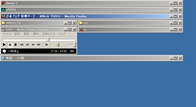 何をしてくれるソフトかといいま ←こんなこともできます。 「で?」と聞かれるとものすごく その他にもウインドをマウスホイ 使い慣れればかなり便利(ズボラできますねw)になるソ 『ぴたすちお』のDLサイトです。 http://ara.moo.jp/pita/index.htm PR